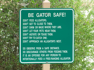Here's the crazy part...I was there once and saw someone letting their two dogs splash around in the water. Now I'm not an expert, but I'm thinking that if the city takes the time to post these signs, there just might be alligators lurking somewhere.